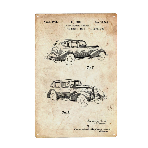 Metall Poster "Retro automobile (Antik)" artboxONE - Automobile - Retro,Auto,Automobil,Vintage,Patent,Fahrzeug,Motor,Fahren - Blechschild
