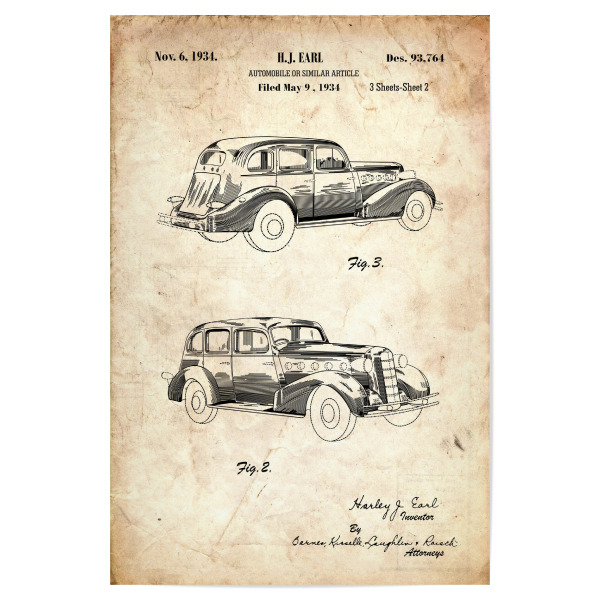 Poster - Canvas - Leinwand - 21 cm x 29,7 cm - Fotoposter - Leinwandkunst - Das us-Patent Fahrzeug