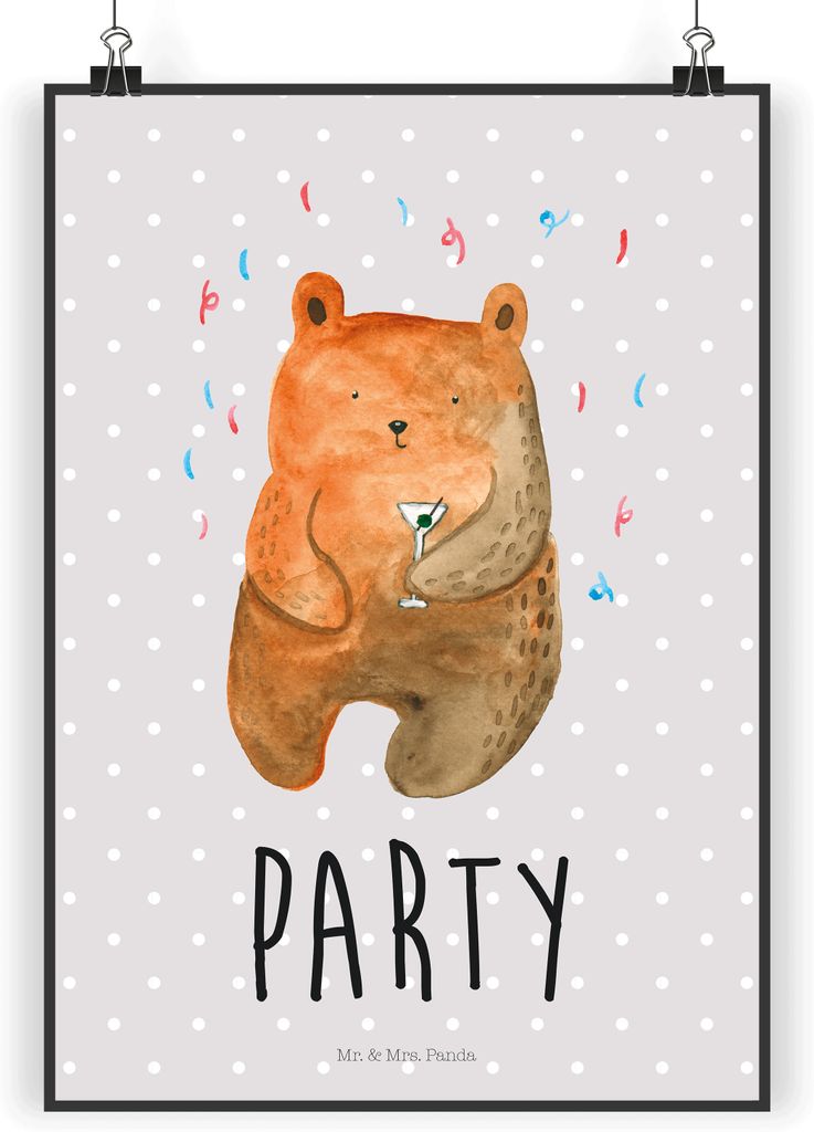 Mr. & Mrs. Panda Bild Bär Party DIN A3 - Grau Pastell - Geschenk, Kunstdruck, Mitbringsel, Teddy, Geburtstag, Deko, Feiern, poster, drucke, Geburt...
