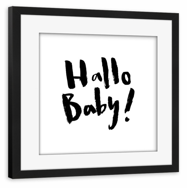 Poster mit Rahmen schwarz "Hallo Baby - Lettering" artboxONE - Typografie - Baby,Geburt,Hallo baby,Kind,Familie,Schwanger