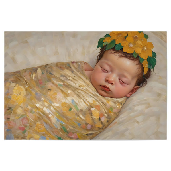 Poster 30x20 cm "Schlafendes Sonnenblumen Baby" artboxONE - Menschen,Für Mama - Sonnig,Baby,Geburt,Babyzimmer,Süß,Schlafen,Gustav klimt,Klimt
