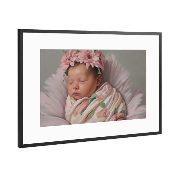 Poster mit Rahmen Schwarz (Metallic) "Rosa Blüten Baby" artboxONE - Menschen,Für Mama - Geburt,Zart,Mädchen,Baby,Babyzimmer,Schlafen