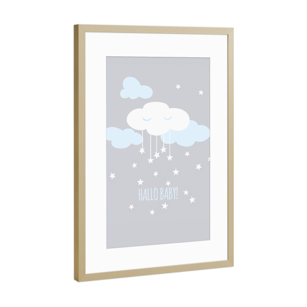 Poster mit Rahmen Gold "Hallo Baby 2" artboxONE - Für Kinder,Für Mama,Für Papa - Zurgeburt,Willkommenzuhause,Geburt,Kinderzimmer,Einschlafen,Baby,Kind