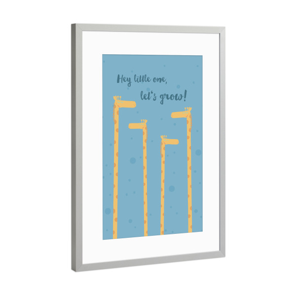 Poster mit Rahmen Silber "Growing Giraffe" artboxONE - Typografie,Für Kinder,Tiere - Giraffe,Wachstum,Zur geburt,Kinderzimmer,Kinderbett