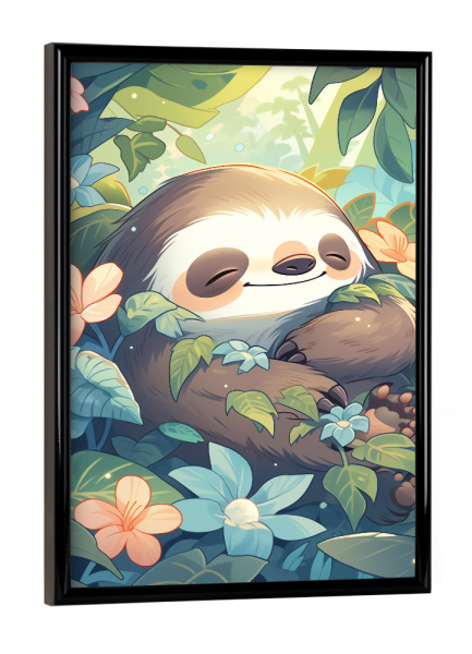 Poster mit schwarzem Rahmen "Süßes Faultier" artboxONE - Natur,Floral,Tiere - Süß,Faultier,Tier,Natur,Blumen,Pflanzen,Kinder,Kinderzimmer