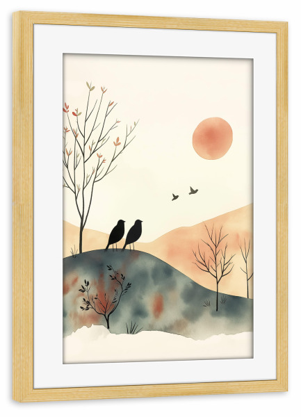 Poster mit Rahmen kiefer "Vögel in den Bergen" artboxONE - Natur,Für Kinder,Tiere - Natur,Tiere,Kinder,Kinderzimmer,Kinderillustration,Vögel,Berge,Ki