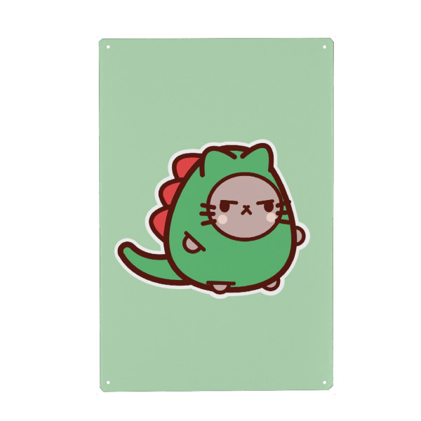 Metall Poster "Dino-Katze" artboxONE - Für Kinder,Tiere,Lustig - Dinosaurier,Süße katze,Lustige katze,Kinderzimmer - Blechschild