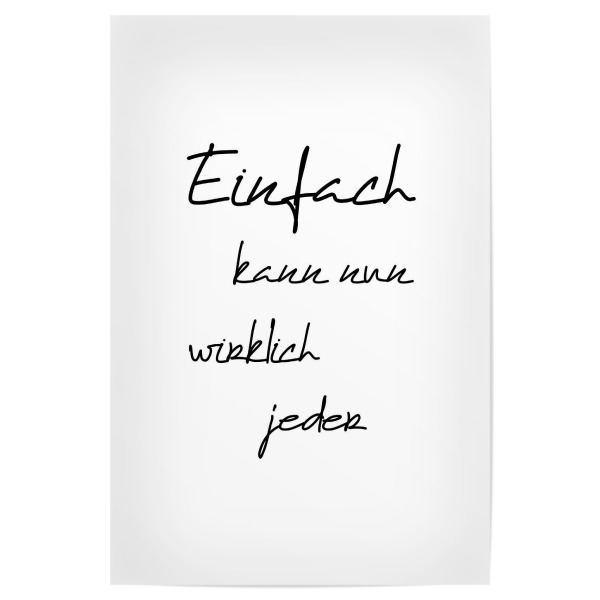 Poster 30x20 cm "Einfach kann jeder" artboxONE - Typografie,Schwarzweiß - Einfach,Schwer,Jeder,Spruch,Text,Können,Machen,Typo,Typografie,Minimal