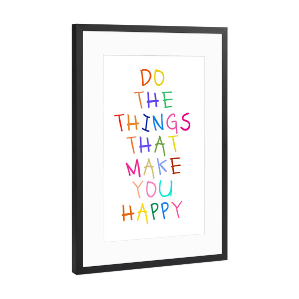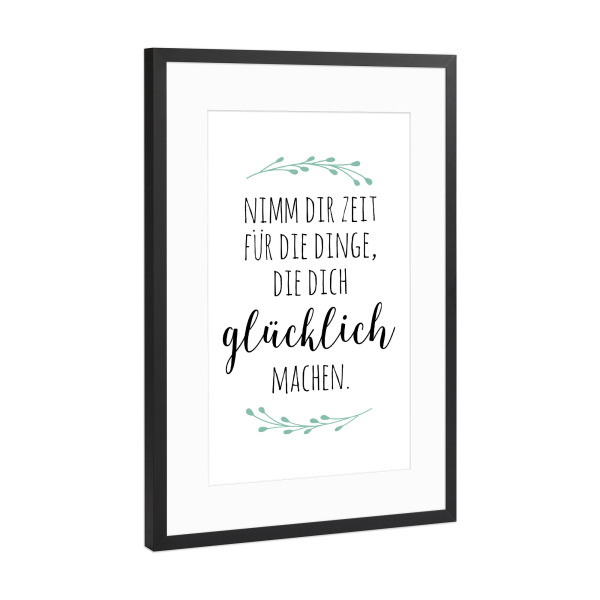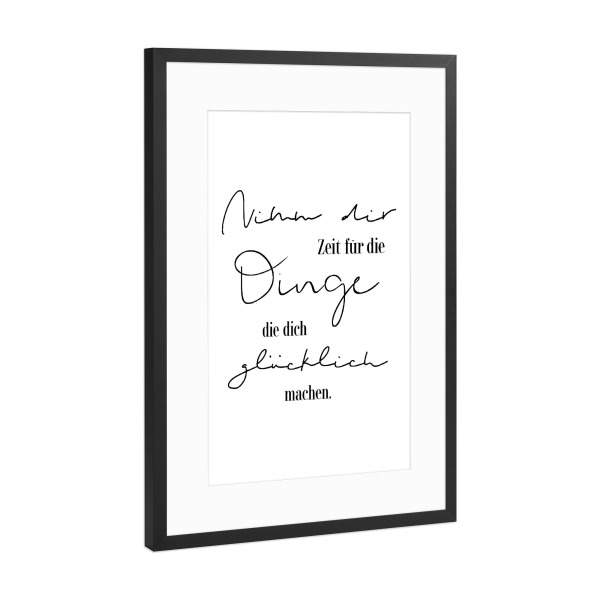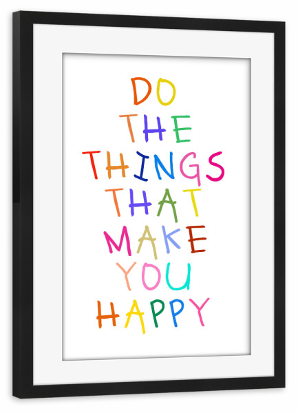 Poster mit Rahmen schwarz "Dinge, die dich glücklich machen" artboxONE - Typografie,Lehrersprüche,Sport / Motivation