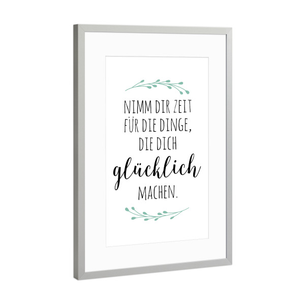 Poster mit Rahmen Silber "Dinge die glücklich machen" artboxONE - Typografie,Floral,Für Mama
