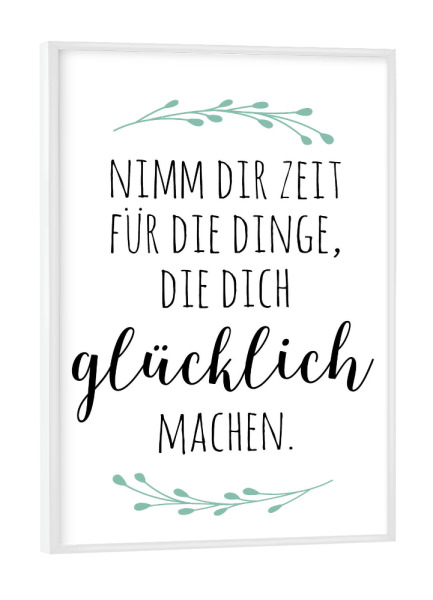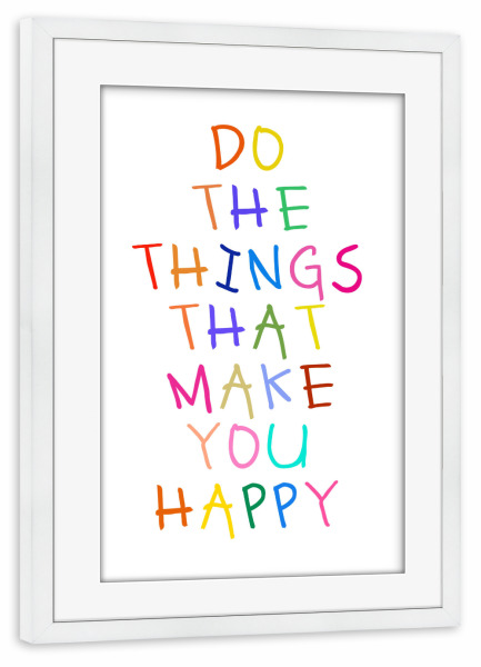 Poster mit Rahmen weiß "Dinge, die dich glücklich machen" artboxONE - Typografie,Lehrersprüche,Sport / Motivation