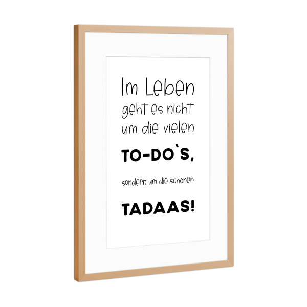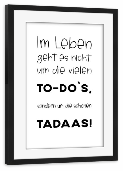 Poster mit Rahmen schwarz "To Do und Tada" artboxONE - Typografie - Statement,Leben,Schön,Machen,Gehen,Viel,Spruch,Typo,Typografie,Positive