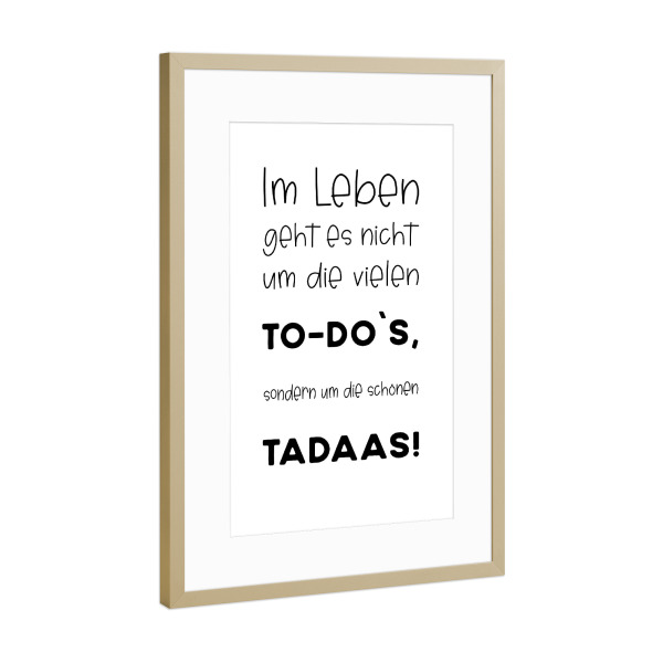 Poster mit Rahmen Gold "To Do und Tada" artboxONE - Typografie - Statement,Leben,Schön,Machen,Gehen,Viel,Spruch,Typo,Typografie,Positive