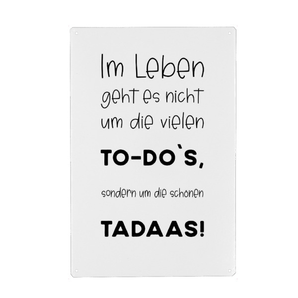 Metall Poster "To Do und Tada" artboxONE - Typografie - Statement,Leben,Schön,Machen,Gehen,Viel,Spruch,Typo,Typografie,Positive - Blechschild