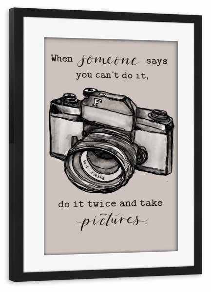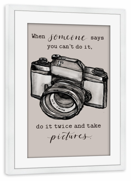 Poster mit Rahmen weiß "Fotos machen" artboxONE - Typografie,Schwarzweiß