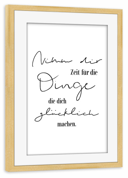 Poster mit Rahmen kiefer "Die Dinge, die glücklich machen" artboxONE - Typografie,Schwarzweiß,Für Mama