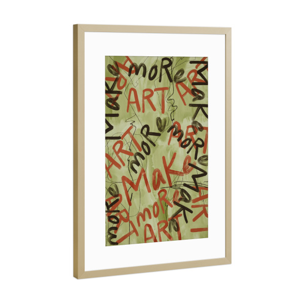 Poster mit Rahmen Gold "Machen Sie mehr Kunst – Grün" artboxONE - Typografie,Abstrakt,Streetart