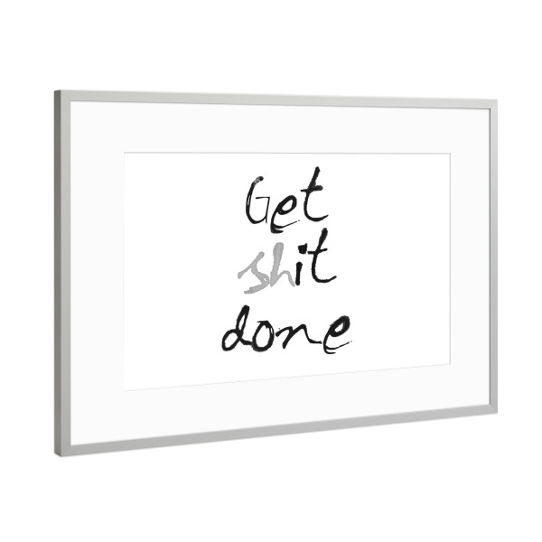 Poster mit Rahmen Silber "Scheiße motivierend machen" artboxONE - Typografie,Comic,Lustig