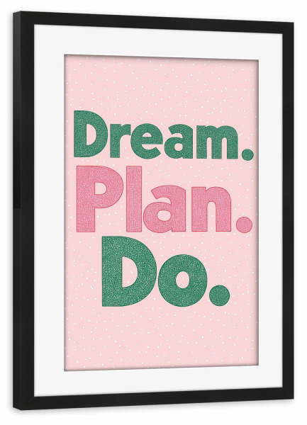 Poster mit Rahmen schwarz "Träume-Plane-machen, rosa" artboxONE - Typografie,Menschen,Buchstaben