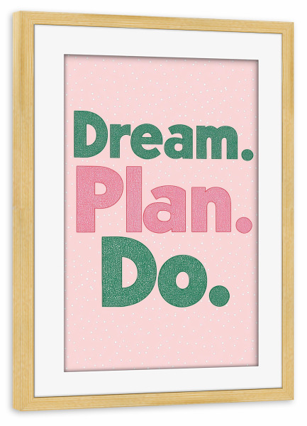Poster mit Rahmen kiefer "Träume-Plane-machen, rosa" artboxONE - Typografie,Menschen,Buchstaben
