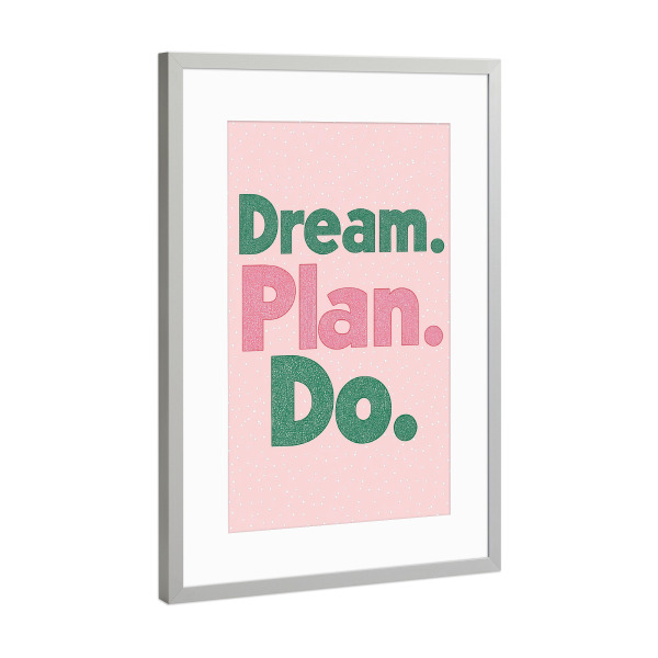 Poster mit Rahmen Silber "Träume-Plane-machen, rosa" artboxONE - Typografie,Menschen,Buchstaben