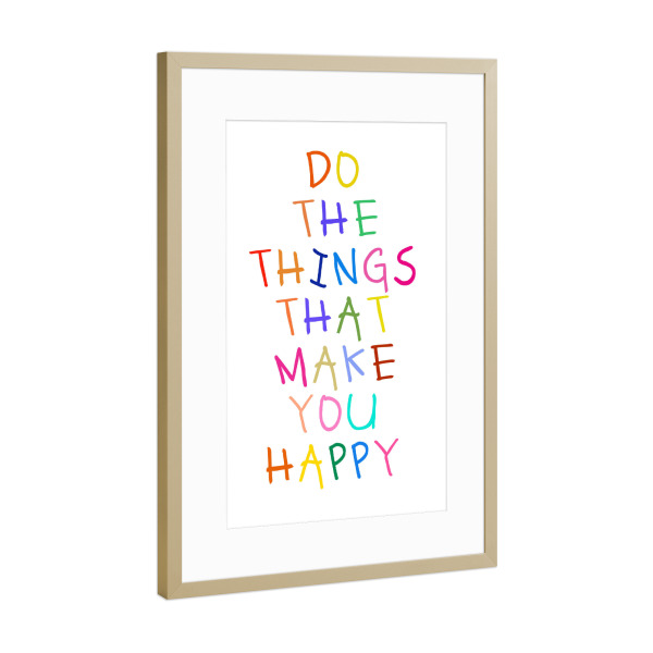 Poster mit Rahmen Gold "Dinge, die dich glücklich machen" artboxONE - Typografie,Lehrersprüche,Sport / Motivation