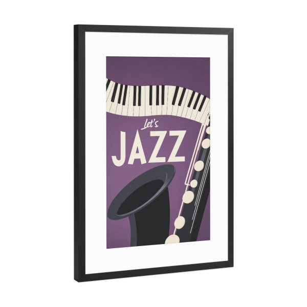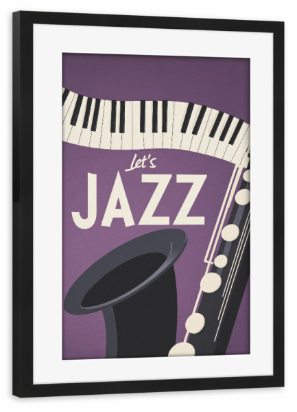 Poster mit Rahmen Schwarz (Metallic) "Lass uns Jazz machen" artboxONE - Musik - Jazz,Klavier,Saxophon,Musik,Vintage,Retro