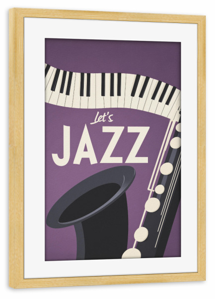 Poster mit Rahmen kiefer "Lass uns Jazz machen" artboxONE - Musik - Jazz,Klavier,Saxophon,Musik,Vintage,Retro
