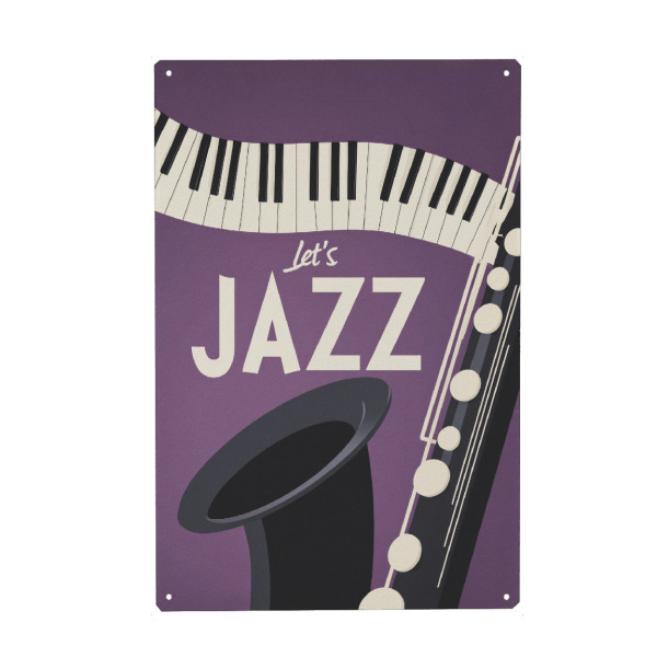 Metall Poster "Lass uns Jazz machen" artboxONE - Musik - Jazz,Klavier,Saxophon,Musik,Vintage,Retro - Blechschild