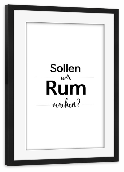 Poster mit Rahmen schwarz "Sollen wir Rum machen' 01" artboxONE - Typografie,Schwarzweiß,Für Papa,Männer,Essen & Trinken / Alkohol,Festivals