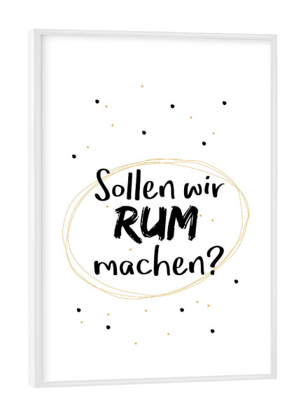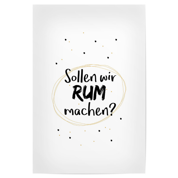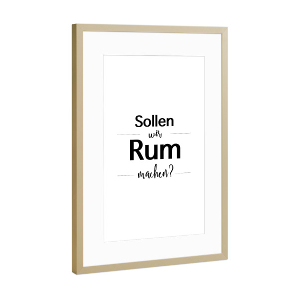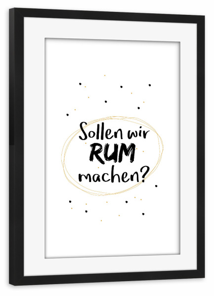 Poster mit Rahmen Gold "Sollen wir Rum machen' 02" artboxONE - Typografie,Schwarzweiß,Für Papa,Männer,Essen & Trinken / Alkohol,Festivals