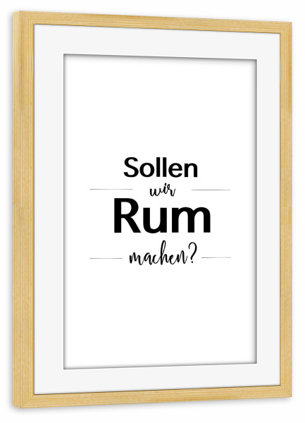 Poster mit weißem Rahmen "Sollen wir Rum machen' 01" artboxONE - Typografie,Schwarzweiß,Für Papa,Männer,Essen & Trinken / Alkohol,Festivals