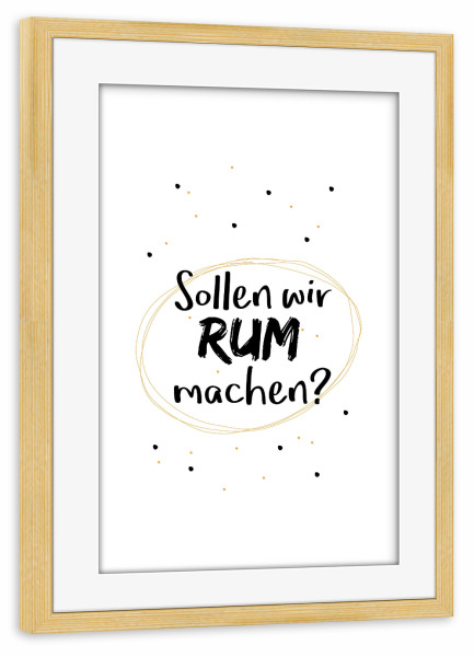 Poster mit Rahmen kiefer "Sollen wir Rum machen' 01" artboxONE - Typografie,Schwarzweiß,Für Papa,Männer,Essen & Trinken / Alkohol,Festivals