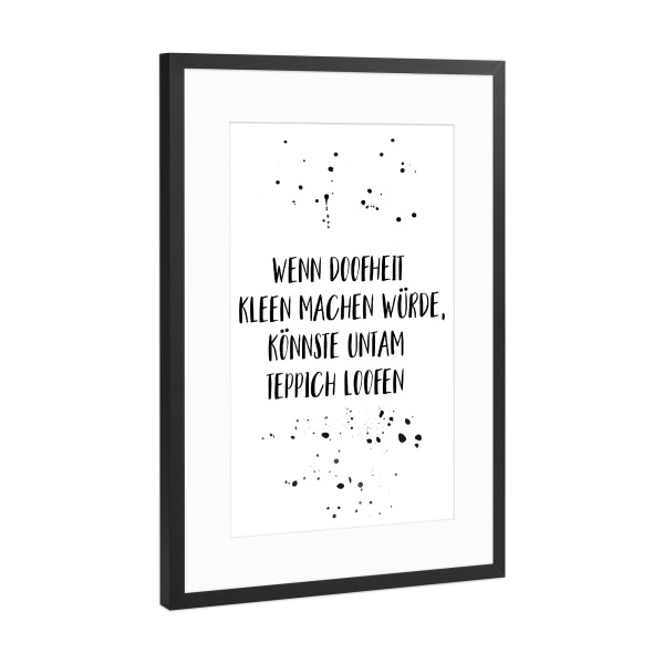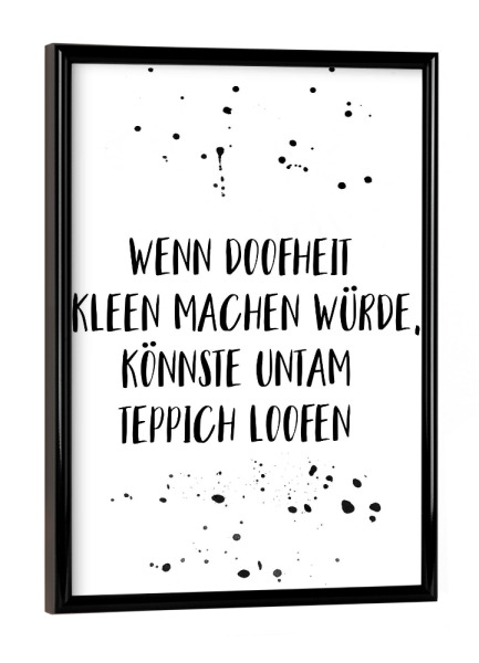 Poster mit Rahmen Schwarz (Metallic) "WENN DOOFHEIT KLEEN MACHEN WÜRDE" artboxONE - Typografie,Schwarzweiß,Lustig