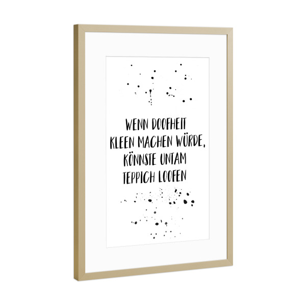Poster mit Rahmen Gold "WENN DOOFHEIT KLEEN MACHEN WÜRDE" artboxONE - Typografie,Schwarzweiß,Lustig