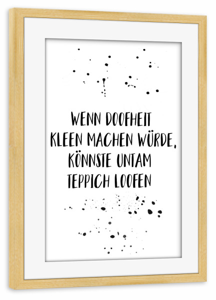 Poster mit Rahmen kiefer "WENN DOOFHEIT KLEEN MACHEN WÜRDE" artboxONE - Typografie,Schwarzweiß,Lustig