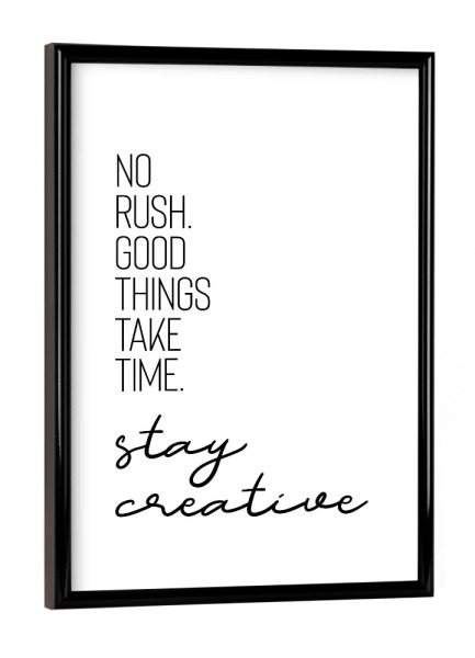 Poster mit schwarzem Rahmen "GOOD THINGS TAKE TIME" artboxONE - Typografie,Schwarzweiß - Spruch,Kreativ,Zeit lassen,Langsam machen,Motivation