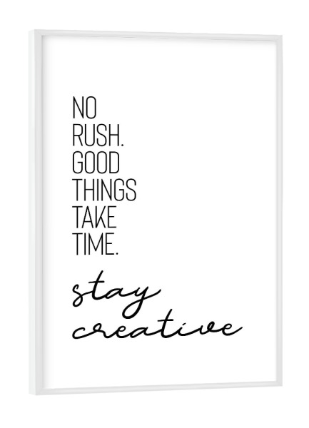 Poster mit weißem Rahmen "GOOD THINGS TAKE TIME" artboxONE - Typografie,Schwarzweiß - Spruch,Kreativ,Zeit lassen,Langsam machen,Motivation