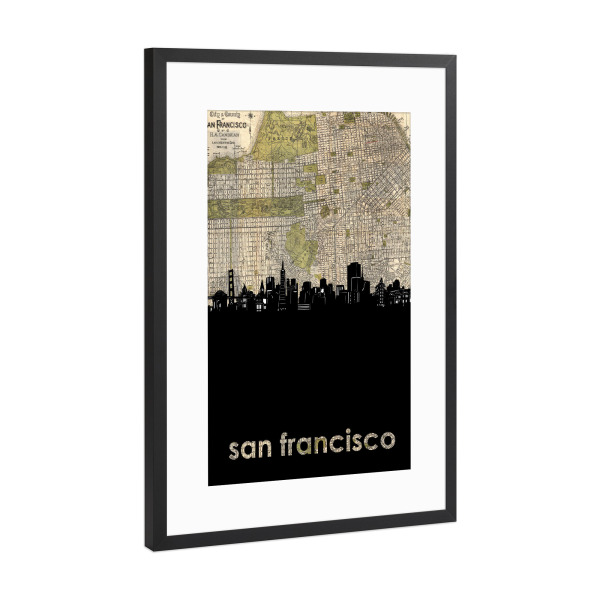 Poster mit Rahmen Schwarz (Metallic) "San francisco skyline map" artboxONE - Städte,Reise,Architektur,Städte / San Francisco,Kartografie