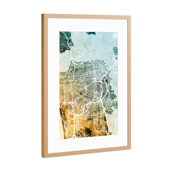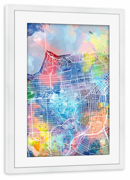 Poster mit Rahmen weiß "San francisco map watercolor" artboxONE - Städte,Reise,Abstrakt,Städte / San Francisco