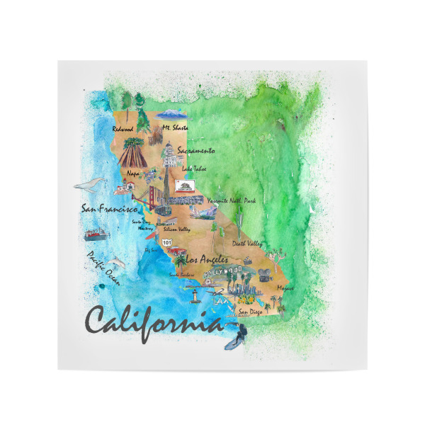 Poster 20x20 cm "California Travel Map" artboxONE - Reise / Strand und Meer,Städte / San Francisco,Städte / Los Angeles,Kartografie