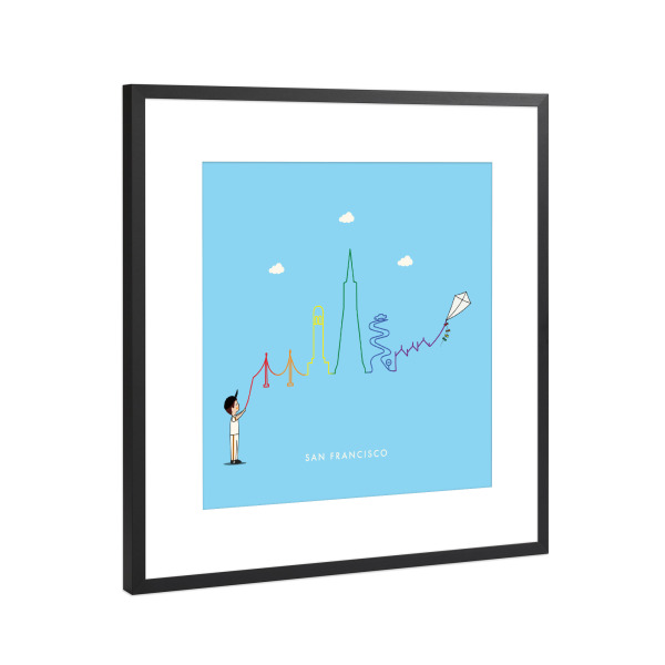 Poster mit Rahmen Schwarz (Metallic) "San Francisco Skyline Kite" artboxONE - Städte,Für Kinder,Städte / San Francisco