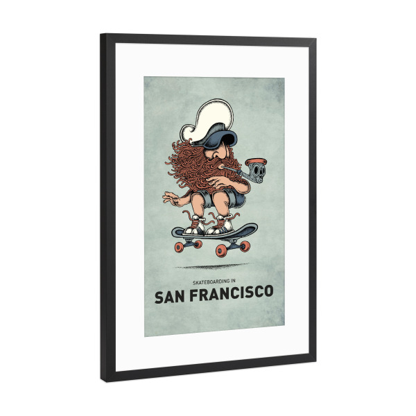 Poster mit Rahmen Schwarz (Metallic) "San Francisco Skateboard" artboxONE - Reise,Streetart,Städte / San Francisco,Lustig