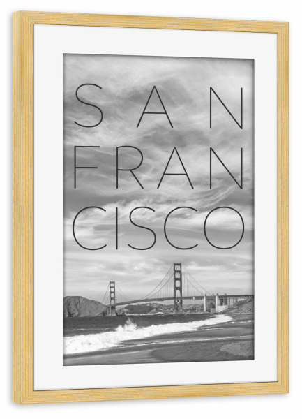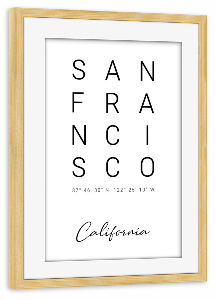 Poster mit Rahmen kiefer "San Francisco | California" artboxONE - Städte,Typografie,Reise,Schwarzweiß,Städte / San Francisco