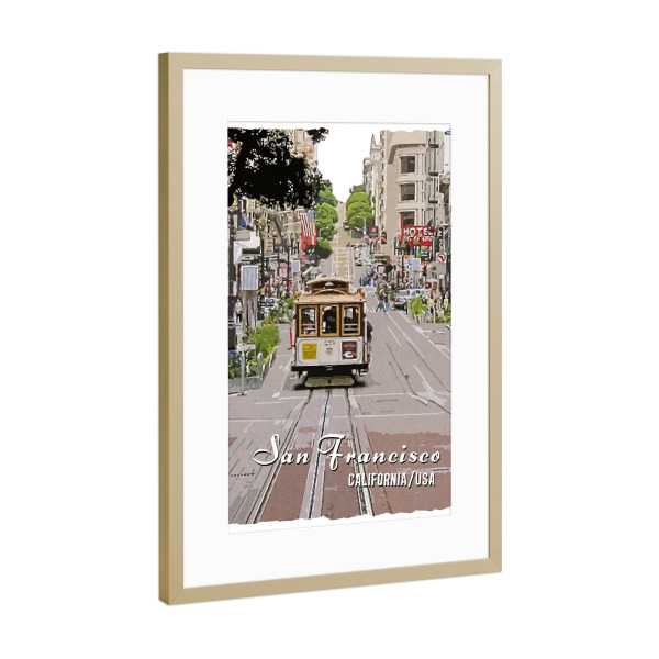 Poster mit Rahmen Gold "San Francisco Vintage Straße" artboxONE - Städte,Architektur,Städte / San Francisco