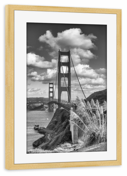 Poster mit Rahmen kiefer "Monochrome Golden Gate Bridge" artboxONE - Architektur,Städte / San Francisco