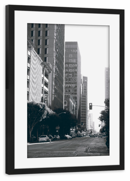 Poster mit Rahmen weiß "San Francisco City" artboxONE - Städte,Reise,Schwarzweiß,Architektur