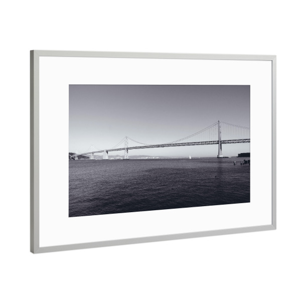 Poster mit Rahmen Silber "Die Bay Bridge @ SFO" artboxONE - Reise,Schwarzweiß,Reise / Strand und Meer,Reise / Länder,Städte / San Francisco