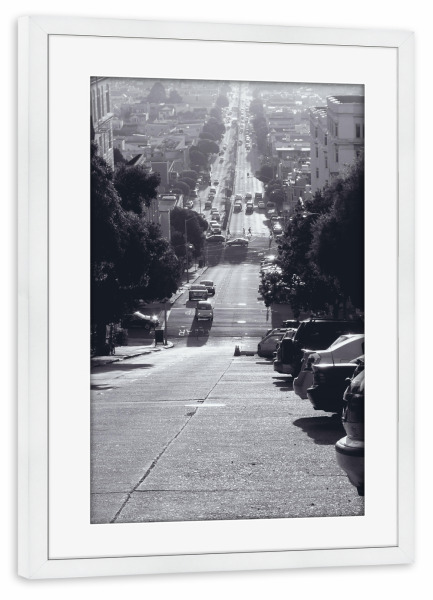 Poster mit weißem Rahmen "Straße San Franciscos - USA" artboxONE - Reise,Schwarzweiß,Architektur,Reise / Länder,Städte / San Francisco