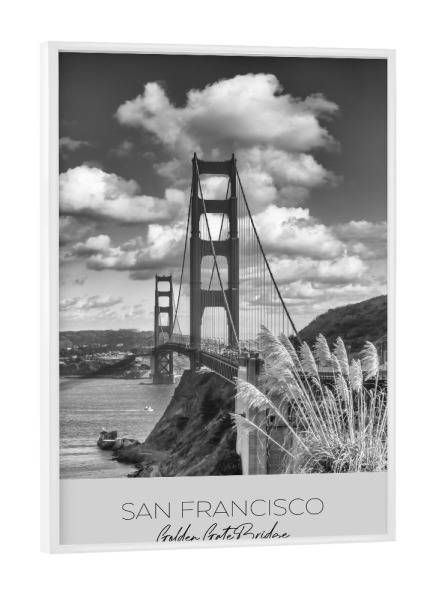 Poster mit weißem Rahmen "San Francisco & Golden Gate Bridge" artboxONE - Schwarzweiß,Architektur,Städte / San Francisco
